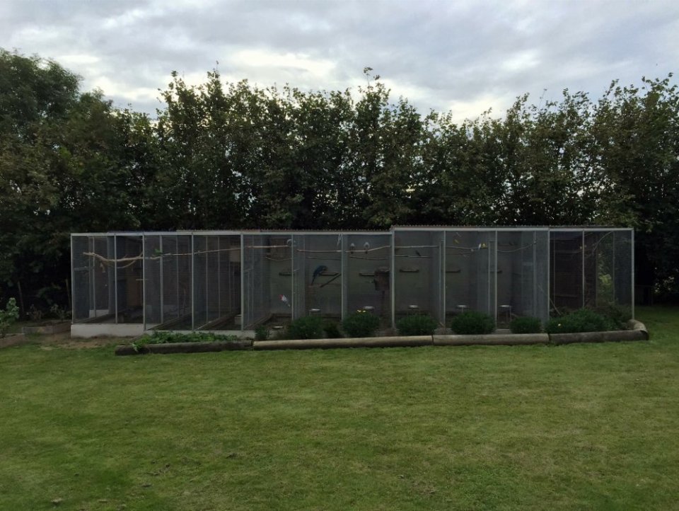 Vi bor idyllisk i Nordsjælland, og har pt. 17 voliere i haven med småfugle, parakitter  og papegøjer.